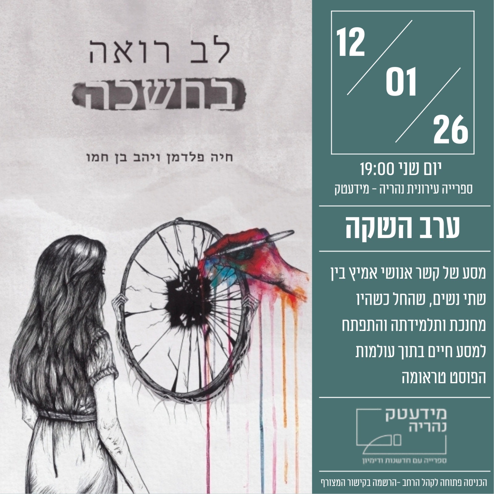 הספר לב רואה בחשכה, מאת חיה פלדמן ויהב בן חמו, נולד מתוך מסע משותף של התמודדות נפשית, קשר אנושי עמוק וחיפוש אחר שפה שמצליחה להחזיק גם חושך וגם אור.
